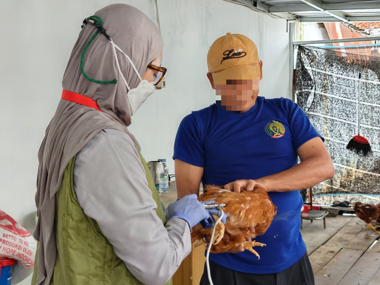 Mereka melakukan penyuntikan vaksin flu burung kepada 186 ekor ayam petelur guna meningkatkan kekebalan tubuh terhadap penyakit yang dapat mengganggu produktivitas.