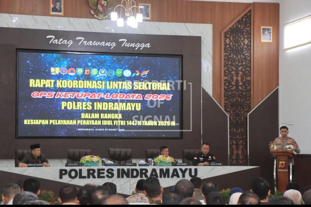 Signal.co.id – Menjelang momentum arus mudik dan balik Idul Fitri 1447 H, Kepolisian Resor (Polres) Indramayu Polda Jabar menggelar Rapat Koordinasi (Rakor) Lintas Sektoral di Aula Atmaniwedhana, Mapolres Indramayu, Kamis sore (5/3/2026).