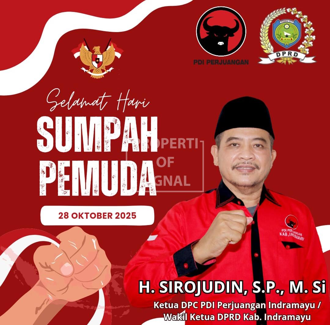 Signal.co.id – Dalam momentum peringatan Hari Sumpah Pemuda 28 Oktober 2025, Ketua DPC PDI Perjuangan Kabupaten Indramayu yang juga Wakil Ketua DPRD Kabupaten Indramayu, H. Sirojudin, S.P., M.Si., menyampaikan pesan penting kepada generasi muda untuk terus menjaga semangat persatuan, gotong royong, dan cinta tanah air sebagai modal utama membangun Indonesia yang lebih maju.